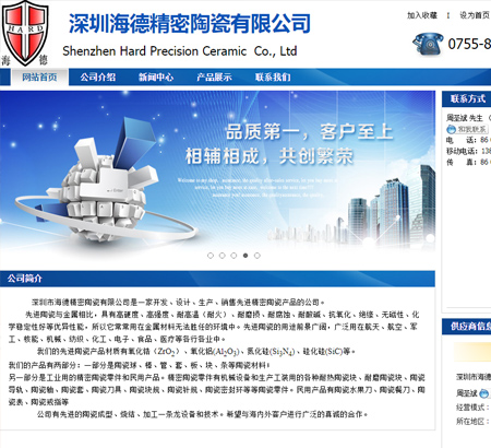 網(wǎng)站建設(shè)公司,做網(wǎng)站優(yōu)化關(guān)鍵詞排名SEO,營(yíng)銷型,手機(jī)網(wǎng)站建設(shè),響應(yīng)式,品牌型,電商/門戶,外貿(mào)型網(wǎng)站建設(shè). 深圳市海德精密陶瓷有限公司是一家開發(fā)、設(shè)計(jì)、生產(chǎn)、銷售先進(jìn)精密陶瓷產(chǎn)品的公司。地址:深圳市西麗鎮(zhèn)