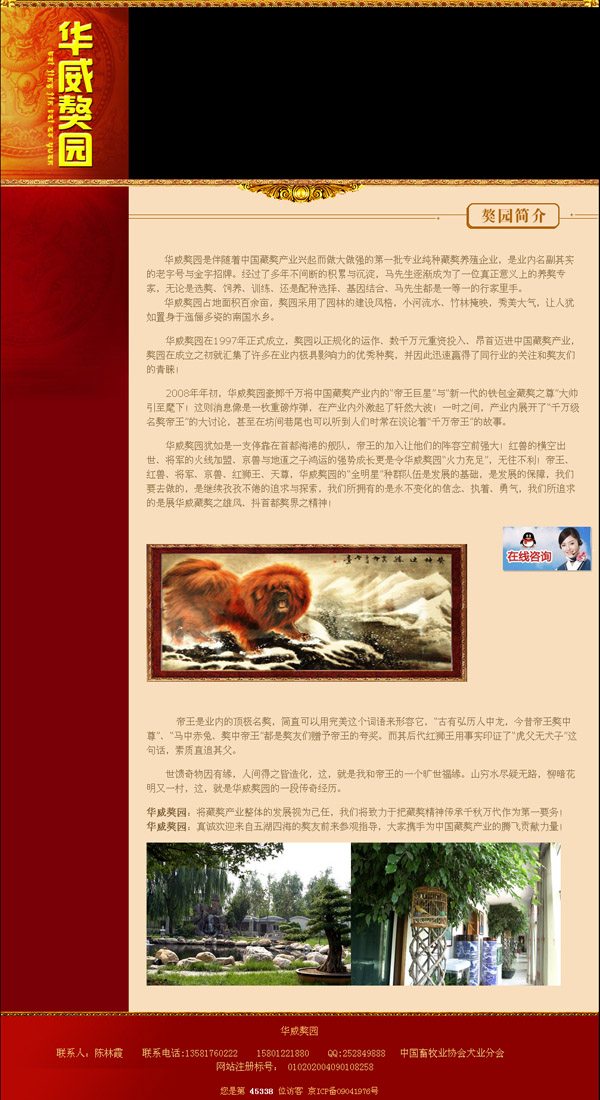 華威獒園在1997年正式創建,獒園以正規化的運作、數千萬元重資投入、仰面邁進中國藏獒財產,獒園在創建之初就搜集了很多在業內極具影響力的良好種獒,并因此靈敏贏得了偕行業的存眷和獒友們的青睞!