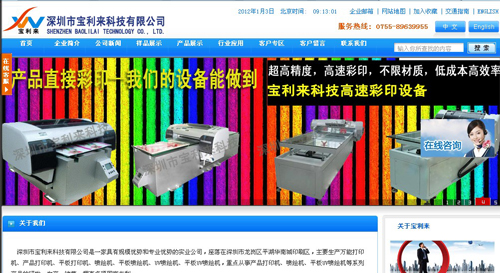 網(wǎng)站建設公司,做網(wǎng)站優(yōu)化關(guān)鍵詞排名SEO,營銷型,手機網(wǎng)站建設,響應式,品牌型,電商/門戶,外貿(mào)型網(wǎng)站建設. 深圳市寶利來科技有限公司主要生產(chǎn)萬能打印機、產(chǎn)品打印機、平板打印機、噴繪機、平板噴繪機、UV噴繪機、平板UV噴繪機,重點從事產(chǎn)品打印機、噴繪機、平板UV噴繪機等系列產(chǎn)品的研發(fā)、生產(chǎn)、銷售,擁有多項國家專利。
