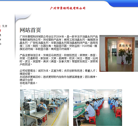 觸摸屏液晶,商用工控液晶,廣告機液晶網(wǎng)站建設公司,做網(wǎng)站優(yōu)化關鍵詞排名SEO,營銷型,手機網(wǎng)站建設,響應式,品牌型,電商/門戶,觸摸屏液晶,商用工控液晶,廣告機液晶外貿(mào)型網(wǎng)站建設. 廣州市景程科技有限公司創(chuàng)立于2004年,是一家專注于液晶系列產(chǎn)品銷售的高科技公司