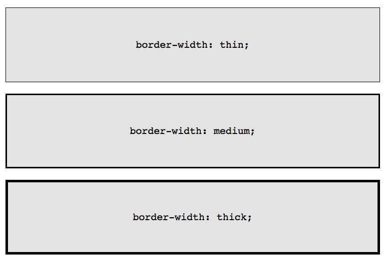 除了指定具體的邊框?qū)挾戎担部梢允褂眠@三個關(guān)鍵詞:thin,medium 和 thick。