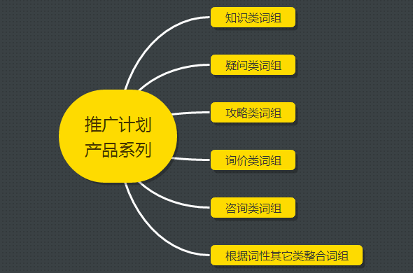 如上圖,針對(duì)一個(gè)具體的產(chǎn)品小編劃分了知識(shí)類詞組、疑問類詞組、攻略類詞組、詢價(jià)類詞組、咨詢類詞組以及其他類型的詞組,其實(shí)不管如何劃分,只要是想做到精細(xì)化運(yùn)作的用戶均需要根據(jù)詞性有針對(duì)性的構(gòu)建關(guān)鍵詞組,因?yàn)橐粋€(gè)推廣組里的關(guān)鍵詞整合了一類用戶的核心訴求,推廣組建好之后,后期的創(chuàng)意描述、落地頁面的選擇都會(huì)圍繞著用戶的真實(shí)需求進(jìn)行設(shè)定,以保證用戶點(diǎn)擊進(jìn)去之后能夠最大化的滿足用戶需求,促進(jìn)轉(zhuǎn)化。