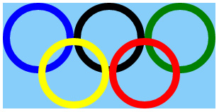 CSS代碼 | /*給外面的盒子添加樣式和定位,主要是為了給五個環一個整體的定位*/ .radius{ position: relative; width: 300px; height: 150px; margin: 0 auto; padding: 0; background-color: lightskyblue; } /*給五個將要設置成環的盒子統一設置CSS樣式*/ .b-r{ float: left; width: 80px; height: 80px; border-radius: 50%;/*radius的使用,給一個正方形設置50%可制作一個圓*/ } /*分別給五個環盒子添加邊框和顏色,邊框即圓環*/ .a{ border: 10px solid blue; } .b{ border: 10px solid black; } .c{ border: 10px solid green; } .d{ border: 10px solid yellow; } .e{ border: 10px solid red; } /*然后對上三個環和下兩個環進行絕對定位,構成一個五環標記圖*/ .sub{ width: 300px; height: 100px; position: absolute; float: left; /*background-color: aquamarine;*/ } .sup{ width: 200px; height: 100px; position: absolute; margin: 50px; /*background-color: cornflowerblue;*/ } |